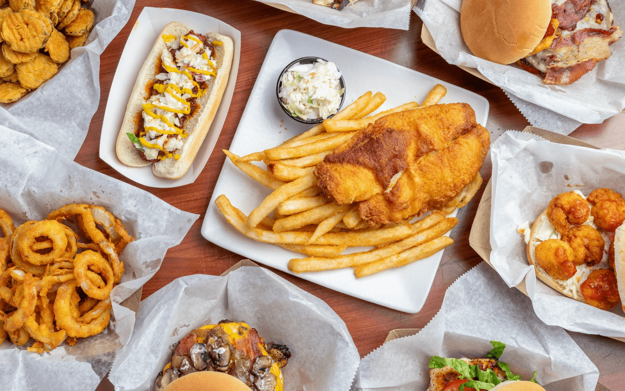 Juicy burgers stacked high, golden onion rings, and saucy shrimp tacos—all served fresh and full of flavor. Each dish is crafted to satisfy, from the crisp crunch of the sides to the bold, savory bites that keep you coming back for more. It’s a feast for the senses, where every plate looks just as good as it tastes.